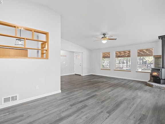 Enjoy peaceful country living on 4.78 acres in this recently updated single-level home offering 3 bedrooms and 2 full bathrooms. Beautifully refreshed with newer laminate flooring, quartz countertops, modern appliances, updated light fixtures, a skylight, and a newer roof. A cozy wood stove adds warmth and charm, while the fenced yards surrounding the home create a safe haven for small pets. Relax on the covered front and rear decks, or gather around the outdoor firepit nestled among mature trees that provide exceptional privacy and a serene natural backdrop. The property offers impressive functionality with a 30x30 detached garage/shop with power, a 16x40 metal RV cover, two 40-ft storage containers, and a horse corral complete with shelter and water—perfect for hobbies, equipment, animals, or additional storage. This property combines comfort, space, and versatility, all just minutes from town yet offering the peace of rural living.