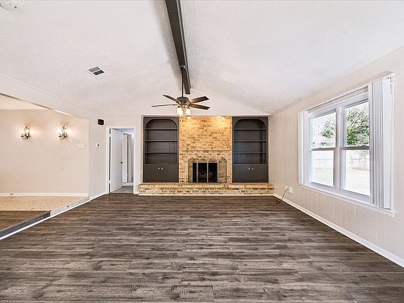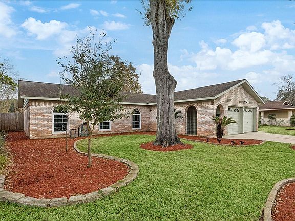 Welcome to this charming single-story home located on a quiet cul-de-sac street. With four bedrooms and two fully remodeled bathrooms, this property boasts new carpet, a back patio, and a spacious backyard. The open concept living/dining room features a brick fireplace, built-ins, and high ceilings with exposed wood beams. Abundant natural light streams through the large windows and sliding glass patio door. The galley kitchen includes a pass-through opening, light color cabinets, and a double oven. The attached garage comes complete with a washer and dryer. Each bedroom offers fresh carpet, ceiling fans, and large windows. Don't miss out on this beautifully updated home! Easy access to Hwy. 45, Ellington Air Force Base, NASA. Close to retail, medical and thirty minutes to downtown Houston, 40 minutes to Galveston island.