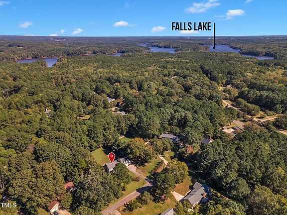 Discover Your Serene Oasis in North Raleigh! Escape the hustle and bustle and find your tranquil haven in this spacious home nestled on a generous lot near Falls Lake. Enjoy the peacefulness and NO city taxes. Step inside to discover a beautifully appointed home with a welcoming foyer and flexible living spaces. The formal dining room, complete with a bay window, seamlessly connects to the kitchen, while the separate living room provides extra space and is currently being used as an office. A cozy wood-burning fireplace creates a warm ambiance in the spacious family room, which opens to both a screened porch and a deck. The kitchen features granite countertops, stainless steel appliances, and a large pantry. A fully enclosed flex room with tiled floors can be used as a second office, sitting room, or play area. Upstairs, the master suite offers a private bathroom, while three additional bedrooms and a shared hall bath provide ample space for family and guests. A finished bonus room over the garage can serve as a fifth bedroom with private full bath or a versatile entertainment space. Enjoy the outdoors on the large screened porch or deck, or relax on the more remote flagstone patio for fire pit evenings or gazing at the stars. The property also includes a convenient outdoor storage building, an attached two-car garage with a workbench, and a boat or RV storage slip. Close to Falls Lake, boat ramps, Annie Wilkerson Nature Preserve, Neuse River Greenway and Falls Lake trails. Hop over to Falls River and Bedford areas for shopping and dining as well as nearby medical services.