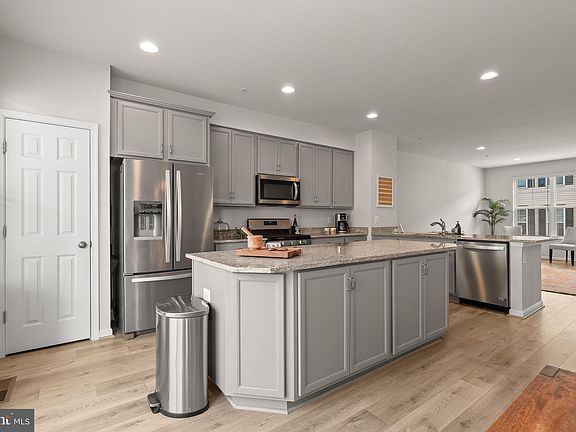 Step into modern elegance in this 2020-built, 3-level townhome, perfectly positioned to face a community courtyard, accompanied by a convenient 2-car garage and 2-car driveway. Nestled in the commuter-friendly Bradford's Landing community, this residence seamlessly combines style and practicality. The open-concept main level welcomes you with luxury vinyl plank flooring, high ceilings, and recessed lighting, creating an inviting ambiance. The kitchen is a chef's delight, boasting 42-inch cabinetry, granite counters, a gas range, island with storage, and a pantry. The combined dining room, adorned with a stylish light fixture, opens to a deck through a sliding glass door, perfect for al fresco dining. The deck is outfitted with composite boards, railing, and weatherproofed wood balusters. The spacious living room on the main level is bathed in natural light, providing a comfortable retreat for everyday life and entertainment. Ascend to the upper level to discover the primary bedroom with a walk-in closet and a hotel-inspired bath featuring a double sink vanity, tiled shower, and water closet. Two additional bedrooms, a full bath, and a convenient laundry room complete the upper level. The entry-level family room, accompanied by a full bath and garage access, adds versatility to the living space. This home boasts modern amenities, including WiFi-enabled light switches with dimmers and a Ring security system. Enjoy the community's amenities, including playgrounds, a dog park, and easy access to a nearby trail leading to East Norbeck Park. Convenience is key, with proximity to schools, the Leisure World community, grocery stores, shopping, the Olney Swim Center, Route 200/ICC, BWI and DC Airports, and the Glenmont Metro for a seamless commute. Experience contemporary living at its finest in this meticulously designed townhome.