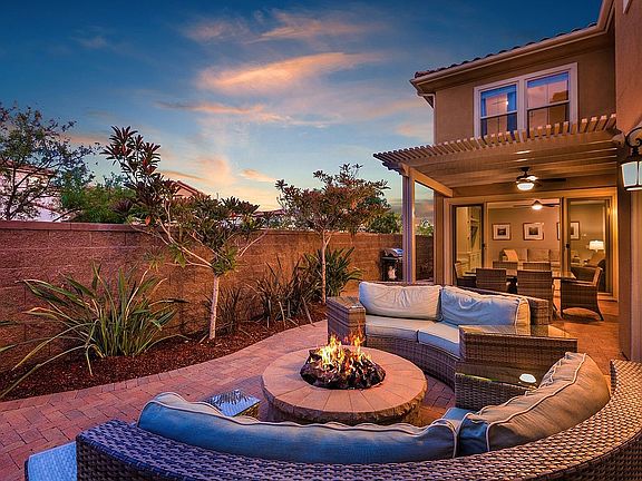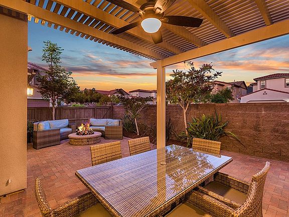 Gorgeous Del Sur home with private entertainer's yard! Great corner lot home loaded with top upgrades and features including an entry level bedroom with full bath, beautiful hardwood floors and crown molding/door casings throughout the 1st floor, spacious family room with built-in cabinetry, plus a gourmet kitchen with granite counters, marble backsplash and large center island. Other desirable features include whole house fan, upgraded baths and spacious yard with pergola, paver patio and built-in firepit. Desirable Del Sur with multiple pools, parks and splash pad. This is an absolute must see!