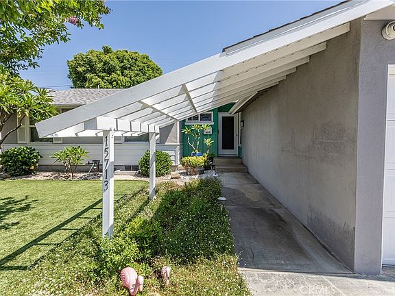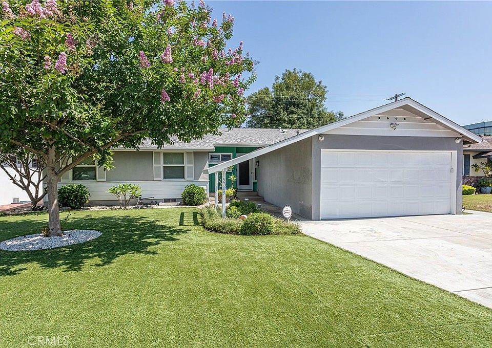 As you pull up you re greeted with a wide driveway, turf front lawn, manicured landscaping, and a blooming tree offering shade. Step inside and you’re instantly welcomed by an airy and open living room that flows effortlessly into the dining area. Refinished original hardwood floors, recessed lighting, fresh paint, an airy living room with a beautiful fireplace create a clean and calming canvas. Large glass sliding doors open to a private backyard bringing in light and extending your living space outdoors. The kitchen blends timeless style and practicality with vintage tile countertops, gas cooktop, built-in oven, pantry, and refrigerator. A built-in workstation adds an extra touch of versatility, and a roomy pantry sits nearby for all your kitchen essentials. The door off the kitchen leads to the attached garage, which includes a washer/dryer, garage refrigerator, built-in storage, and a newer garage opener with keypad and app access. The garage is also equipped with a dedicated EV charging circuit. The primary suite is privately located at the rear of the residence with an en-suite bath, while three additional bedrooms—each with ceiling fans—share a full hall bathroom with vintage tile and pedestal sink. The converted office, currently set up with a full built-in desk and upper cabinets, offers the perfect space for working from home. Step outside to a spacious backyard that offers just the right amount of greenery, shade, and open space to relax or entertain. The spacious backyard features a high privacy fence and hedge, large aluminum patio cover, 8x16 Tuff Shed with locking door, window, and custom shelving perfect for storage. Major upgrades include: New roof (2021), Copper re-pipe & replaced sewer lines, and dual-pane windows throughout.