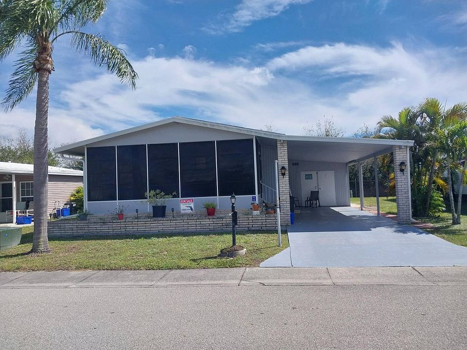 Home has 2 bedrooms and 2 baths close to the pool and clubhouse. Exterior has the perfect set up with an enclosed lanai, carport and a large attached shed, back yard has endless oppurtunites.Kitchen is an open concept looking into the dining room and living room the guest bath is tub/shower combo and master is spacious with walk in shower. This home is priced to sell call listing agent for a appointment to view the home and our park.