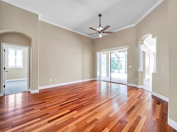 FishHawk Ranch – spacious Southern-style home featuring 5 bedrooms, 4 bathrooms, a den, a 3-car garage, and 3,236 sq ft of living space. Built in 2004- this home offers a traditional floor plan with a covered front porch, formal dining room, formal living room, and a private office with French doors at the entry. The kitchen includes 42” cabinetry, granite countertops, center island, pantry, and a breakfast nook overlooking the family room with its' stacked stone hearth and fireplace. Volume ceilings, large windows, and sliding glass doors provide natural light and an open feel. The primary suite is located on the main level with a walk-in closet, dual vanities, garden tub, and separate walk-in shower. This home features a three-way split bedroom plan: two secondary bedrooms share a bath, one bedroom is tucked off the family room with access to a full bath, and the fifth bedroom is an upstairs bonus room with a full bath- ideal for guests, media room, or flex space. A screened lanai extends the living area and overlooks the backyard. This home has FRESH PAINT inside (SW accessible beige) and out and also has NEW carpet in the few rooms that have it. All other floors are either wood or ceramic tile. The ROOF is 2023 and the WATER HEATER 2022 per public record. Located in FishHawk Ranch, offering community amenities including splash pad & pools, fitness centers, playgrounds, fun community-oriented parks, tennis courts, and extensive nature and walking trails. Zoned for A-rated Hillsborough County schools. Convenient to shopping, dining, and major commuter routes. It is good to be home.