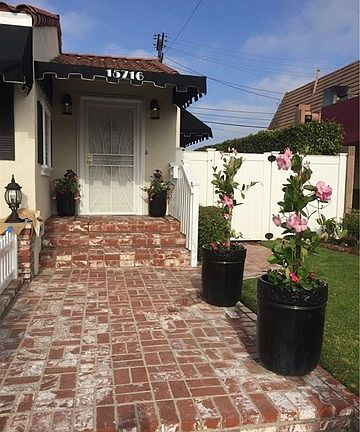 welcome to this sunny and vibrant retreat set up as a home yet able to run a small business from as well perfect location for a starter business and or just working from home! close to freeway and El Camino College 2 spacious bedrooms and 2 full baths one room a master suite all stainless steel appliances and mahagony wood in kitchen formal dinning room large living and family room with bedrooms in rear! private patio and deck in rear with a street to alley lot and a 2 car garage in back private rear yard perfect for entertaining! hurry!