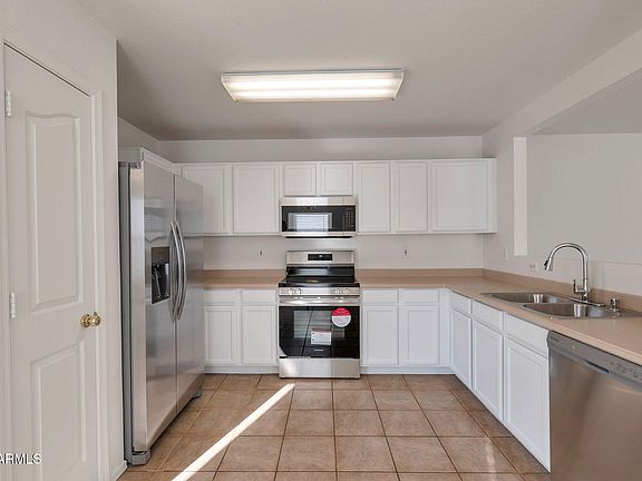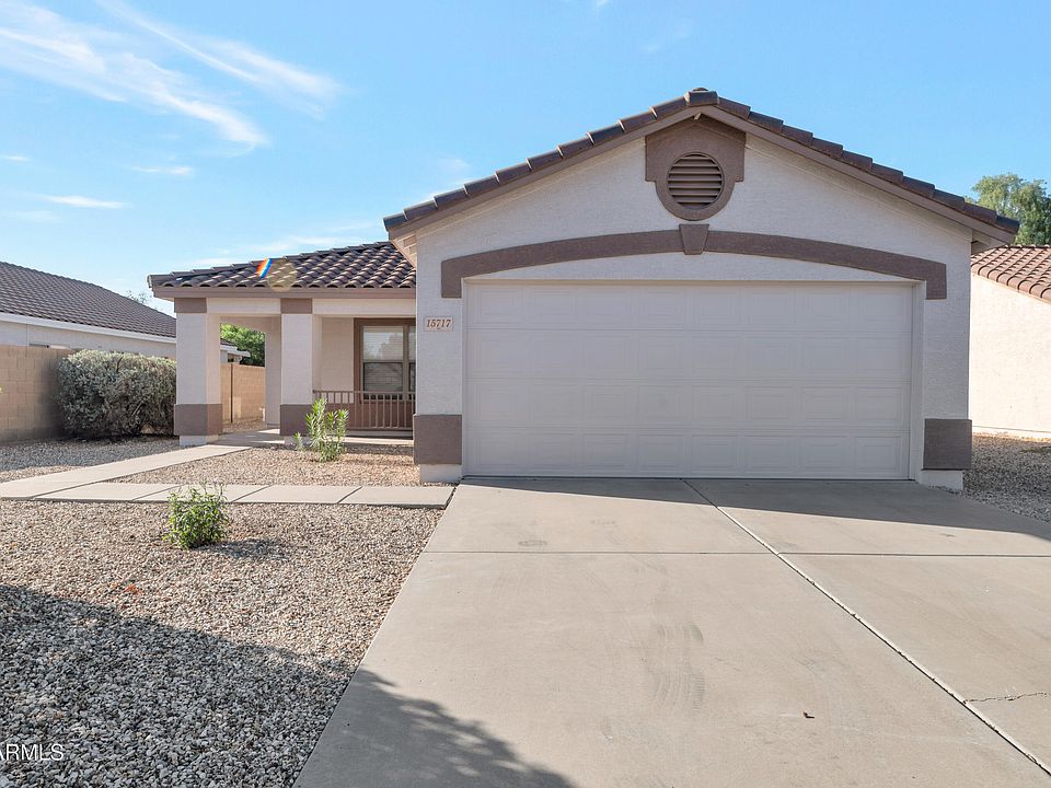 Welcome to this Charming single-level home that features 3 bedroom, 2 Bath, Great room & Eat-in Kitchen. Recent upgrades are Brand New HVAC Unit. Fresh neutral interior and exterior painting including 2 car garage. New Carpet in 3 bedroom. Neutral tile in all other areas. New window coverings throughout. All NEW Stainless Steel Appliances! Eat-in kitchen exits onto covered patio & easy care desert landscaped yard. Families can research public or charter schools located in the community area. Just minutes from Loop 303 freeway, shopping, restaurants and Surprise sports stadium. Multiple mini-parks for sports & family picnics. Only thing left to do is move-in! Seller is doing a 1031 Exchange, this will not affect the Buyer in any way!