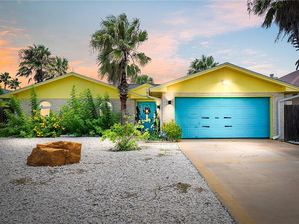 Distinctive. Vibrant. Unmistakably Island. Not every home tells a story — but this one does. Located on North Padre Island in Corpus Christi, this single-story, 3-bedroom, 2-bath home offers a blend of character and comfort. Soaring cathedral ceilings, a wood-burning stone fireplace, and French doors create a relaxing and inviting layout, while a brand-new roof and updates like granite counters, stainless appliances, and tiled walk-in showers make it move-in ready. What truly sets this property apart is its backyard retreat — a private oasis filled with tropical landscaping, shaded deck space, and plenty of room to unwind or entertain. It’s a slice of Padre you'll truly love! Located just minutes from the beach, fishing, and lively restaurants - this home works perfectly for full-time living, vacation escape, or smart investment. If you're dreaming of an island home with its own personality, 15718 Escapade is ready for you!