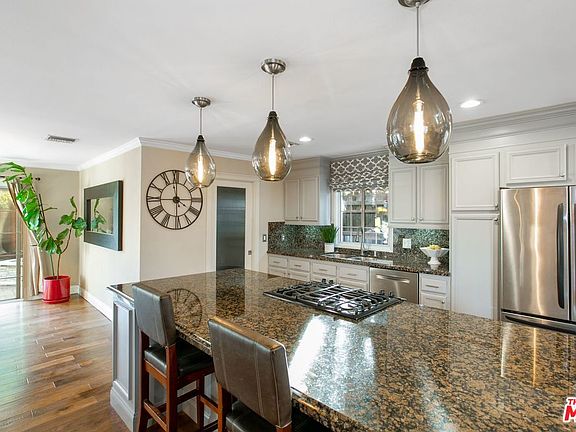 Don't miss the opportunity to own this stunning Granada Hills 3 bed, 3 bath upgraded home! Meticulously maintained and upgraded throughout, this home features new hardwood floors, custom built kitchen cabinets and granite counters, upgraded bathrooms, and gorgeous plantation shutters throughout beaming with natural light. Upon entering the home, you will find a sweeping and open layout leading to a perfectly landscaped and private back yard perfect for entertaining with ample patio space, new cedar fencing, custom built fountain, citrus trees and other exotic landscaping such as Podocarpus trees. One of the bedrooms has custom built in shelving and desks perfect for anyone looking for a home office! Large laundry room also included inside the home! Large 2 car garage has been upgraded to include ample workshop space and electricity for any special projects. Sitting on a quiet tree lined street, this home is conveniently located close to shopping, Trader Joes, Whole Foods and freeways!
