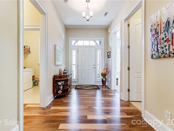Wow! Meticulously maintained 2BR/2BTH ranch in Regency at Palisades. Easy walk across the street to the amazing amenity area incl clubhouse, pickleball, indoor lap pool, kitchen, spa & fitness ctr! Enter into foyer filled w/natural light & gleaming hand scraped hardwoods. Beautiful Plantations Shutters thruout the entire home! Large dining room w/heavy moldings. Open flow to kitchen w/custom wood cabinets, under counter lighting, pull outs & custom granite. S/S appliances incl KitchenAid 4 burner gas cooktop w/downdraft. Spacious owner's suite w/tray ceiling & walk in closet by Closets By Design. Owner's bath boasts dual vanity w/custom framed mirror, oversized walk in shower w/ frameless glass & dual shower heads. Laundry room w/plentiful storage spc. Office/study space perfect for working from home or homeschooling. Move outside to a beautiful huge custom paver patio w/knee wall btwn covered porch & screen porch. Epoxy garage floor, full irrigation & HOA covers lawn maintenance!