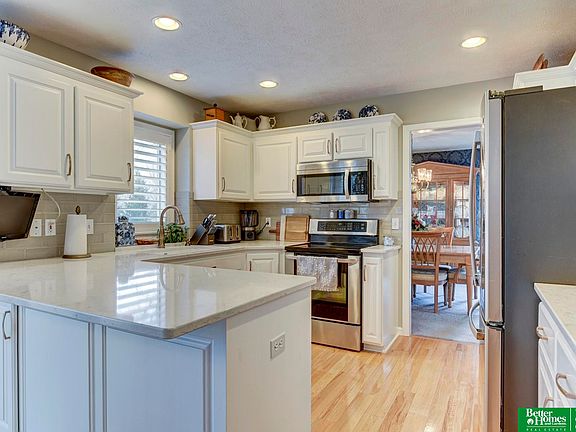 Located on a cul-de-sac in coveted Millard School District w/over 80K in updates, this gorgeous, one-owner immaculate home is the one you’ve been waiting for! Spacious floorplan includes Formal Living & Dining Rooms, and large Family room with new carpet & gas fireplace flanked by built-in shelving. Open, modern kitchen boasts wide plank wood flooring, quartz countertops, breakfast bar area & stainless steel appliances. Generous sized Bedrooms on 2nd floor including huge Master Suite w/sitting area, XL walk-in closet & Full bath w/dual vanities. Fully Finished Lower Level w/Rec room, high-top wetbar, full-sized frig, built-in corner tv cabinet, Lg flex room w/wall of closets (perfect den, guest or exercise rm) + ¾ bath. Fully fenced yard w/mature shade trees, beautiful stamped concrete patio, composite deck, sprinkler sys & concrete landscape edging. Pella windows thruout (60% replaced in 2020), HVAC & roof replaced 2014, insulated garage door 2017 & more! Close to schools & amenities!