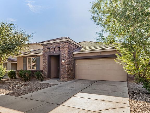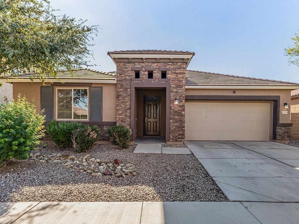 Look no more! Solar included- save costs on your energy bill! Comfort meets convenience in this energy-efficient rental home featuring a 2-car garage & stone facade. Inside, the inviting hallway leads to the large open floor plan filled w/lots of natural light. Fabulous kitchen is a cook's delight, boasting recessed & pendant lighting, mosaic tile backsplash, stainless steel appliances, a walk-in pantry, ample cabinetry, quartz counters, & a center island w/a breakfast bar. Sizable primary bedroom offers a peaceful retreat, complete w/a private ensuite w/dual sinks & a walk-in closet for easy organization. Flexible den is ideal for work or play. PLUS! A washer & dryer are included. Spacious backyard has a storage shed, pavers, & a covered patio where you can unwind after a busy day.
