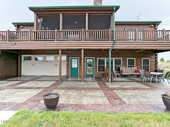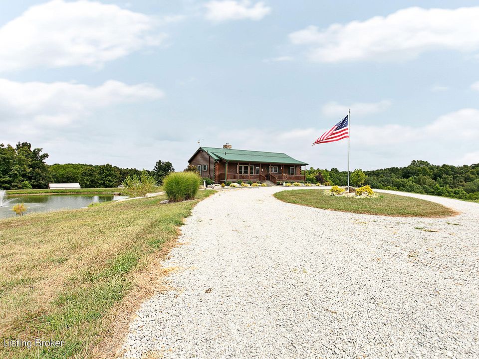This immaculate log home is a must see for anyone wanting to enjoy country living. Located in Spencer County near the Taylorsville Lake you can find this inviting 3 bedroom, 3 bath home with full basement on 52.90 acres of rolling farmland. First floor consists of an open floor plan with kitchen, dining area, family room, 2 bedrooms, laundry and 2 baths. The kitchen is efficiently designed with a bar, beautiful hickory cabinetry, granite counter tops and all appliances. The family room is enhanced by a beautiful stone fireplace plus access to the screened in back deck overlooking the farm. Primary bedroom suite includes a bath, large his & hers closet and French doors leading to the deck as well. A second bedroom and nice laundry room complete the first floor. As you walk down to the basement you find a large guest/mother-in-law suite with kitchen, living room and bedroom plus a full bath. Just off the kitchen is a safe room/storm shelter with lots of storage. From the suite you can access the oversized 2-car drive in garage in that basement also. Leaving the basement there is a covered porch plus a large patio with beautifully stamped concrete that allows for lots of room for outside entertaining. The home has Geothermal HVAC and a propane powered whole home generator. Outbuildings include 16 x 36 detached garage with a 12 x 36 attached equipment shed, a shop and a metal canopy type machinery shed. There is a 2-acre stocked lake, a nice pond with fountain and another small pond on the property. Lots of woods and plenty of deer and turkey for the outdoorsman. Describing this all the amenities of this beautiful farm is almost impossible without seeing it with your own eyes. Schedule your private showing today.