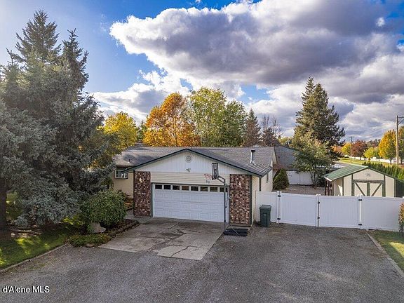 MOVE IN READY - This spacious and updated home features 4 bedrooms, 2 baths PLUS an office, a full basement, and an attached 2-car garage. You will find LVP flooring, modern finishes, and year-round comfort with the main floor fireplace, lower-level wood stove, and central A/C. The spacious lower-level family room and large laundry area offer plenty of extra living space. The private covered back deck make entertaining easy and is full of lush landscape with sprinklers in front and back. Sitting on a large corner lot with room for a shop, this property offers private gated RV parking, low county taxes and no HOA or CC&Rs—all close to shopping, schools, parks, and I-90.