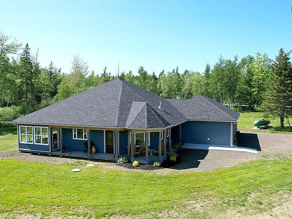 Just built in 2023! This beautiful home on just over 5 acres has been designed for maximum energy efficiency, comfort and easy maintenance. Built on slab with attached double garage, wrap-around veranda, and clad with high quality "shake style" vinyl siding, this attractive contemporary design has classic elements that exude the warmth of Home. A high efficiency propane furnace provides in-floor hot water radiant heat, and there is air conditioning for those sultry Summer days. The whole home backup generator system provides instant power during outages. There are many practical reasons to purchase this fabulous home, but the homeowner has also created a beautiful interior with luxurious features that will appeal to your aesthetic side, too. The main living area is open plan, with wide mouldings, attractive lighting, high quality doors, windows and cabinetry. Home chefs will appreciate the beautiful custom kitchen with farmhouse sink, stainless steel appliances and granite counter tops. An oversized island topped with granite, is perfect for entertaining and your Christmas cookie marathon! There is a dining area, and a living area with central propane fireplace flanked by windows, plus an oversized picture window looking out toward the fields, vineyards and hills of Bear River. The generous Primary suite has plenty of space for a king size bed and a seating area around the propane fireplace. The ensuite bathroom with corner shower and soaking tub, also includes a large Corian counter top with built in vanity; plenty of space for daily care and personal spa time! Naturally, this suite also has a walk in closet. Other highlights are: a 2nd bedroom, a 2nd bathroom with marble top vanity, and a laundry room with utility sink and entry foyer to the garage. There is also a sun room off the back of the house, a great breakfast room and lounge area. Located minutes from amenities in Digby and the village of Bear River.