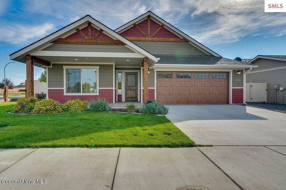 Pride of ownership boasts from this gorgeous craftsman style rancher with high end finishes in the heart of Post Falls. This beautiful home offers a open living room with a vaulted ceiling and a cozy gas fireplace with masonry accents. The kitchen is great for entertaining with its open concept, spacious island with granite countertops, stainless appliance and corner pantry. The master suite features a barn door leading to the larger master bathroom with dual sink and tile walk-in shower. Situated on a nice fenced corner lot, this home also offers a covered patio, open deck and raised garden bed. Don't miss this beautiful move-in ready home.
