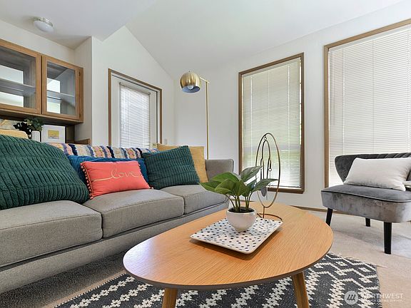 This charming move-in ready townhome invites you to stay in a welcoming community in Pine Lane, Shoreline! The fantastic floor plan lives like a single-family home, featuring spacious rooms, vaulted ceilings, cook's kitchen with garden window, updated windows. The versatile downstairs room with a full bath is ideal for guests or multi-generational living—and is equipped with grab bars for added safety and accessibility. Both bathrooms offer oversized soaking tubs. Outside, enjoy the serene landscaping and private patio. Just blocks from shopping, dining, and more—now with convenient access to Link Light Rail, featuring two nearby stations (148th and 185th) that offer fast, frequent service to downtown Seattle and beyond.