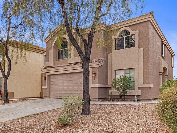 Beautiful and spacious move in ready 4 bedroom / 2.5 bath home perfectly located right off of the I-10 freeway in Buckeye! This home features one bedroom downstairs and 3 bedrooms upstairs plus a huge loft! The kitchen includes lots of cabinet space, a walk in pantry and all appliances. A/C unit installed in 2022. Additional storage in the garage with attached cabinetry. Freshly painted exterior and a low maintenance backyard ready for turf or grass!