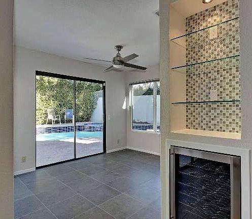 Refreshed, open, bright, spacious Los Compadres home on FEE simple land and NO HOA is ready to move in. New paint in and out, new tile, new back splash, updated kitchen, updated baths and dual pane windows enhance the comfort and style of this amazingly livable home. The double sided brick fireplace anchors both the den and dining rooms. Enjoy your very private yard with sparkling pool and spa. Storage is abound with a huge walk in closet and an over-sized 3 car garage.