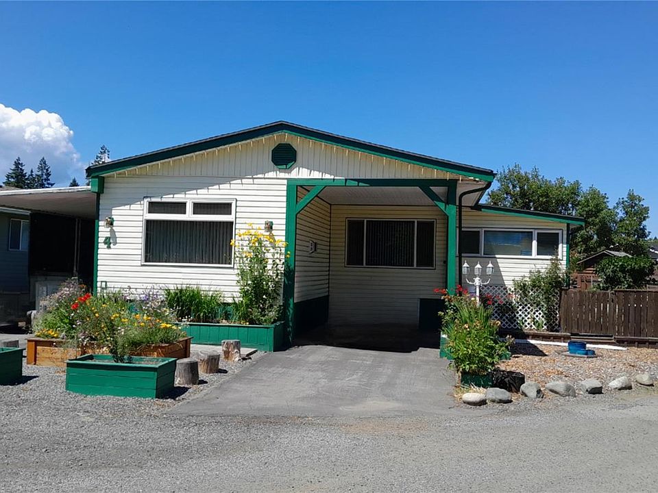 Experience spacious, comfortable living in this well-kept 1,800 sq ft home in a peaceful 55+ community minutes from the Nanaimo Airport. The layout offers three bedrooms, two large bathrooms, an eat-in kitchen with pantry, a formal dining room, bright living room, storage room, and a generous sunroom for year-round use. Enjoy two covered decks—one partially enclosed with workbenches and extra storage—plus two covered parking spaces, two storage sheds, and a small greenhouse. Gardeners will love the mostly fenced yard with raised and enclosed beds and a variety of perennial edibles, including berries, grapes, asparagus, herbs, and more. Close to amenities, walking trails, beaches, and transit, this home offers comfort, convenience, and a relaxed Vancouver Island lifestyle.