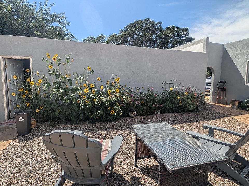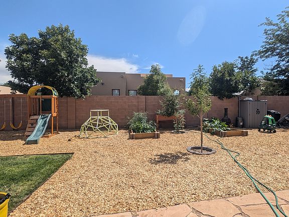 Come take a look at our recently renovated home sitting just under a .25 acre. Outside it offers a spacious backyard with patio to relax, garden, and watch the bees and birds explore the wildflowers. Corner sand area for kits to play (swing set not included). Inside offers 4 bedrooms and two bathrooms or 3 bedrooms and an office. Primary room offers walk in closet and stand up shower. All appliances are updated including 4 burner stove with a range. The front yard has a carport and 1 car garage for storage or to park. Valle del Bosque park is a 5 minute walk from the house and behind the park are trails along the Rio Grande. We sit between two urban farms where you can pick up local produce at set times during the year. Central location. Tenant will be responsible for gas, electric, water, trash. $250 pet non-refundable fee is required if applicable. Lease is for 12 months and will notify owner if they will not renew at least 30 days in advance.