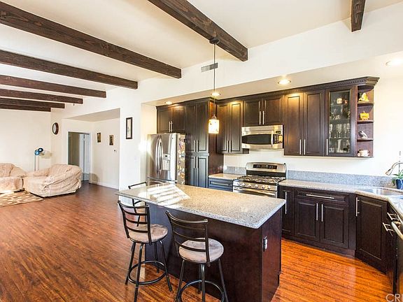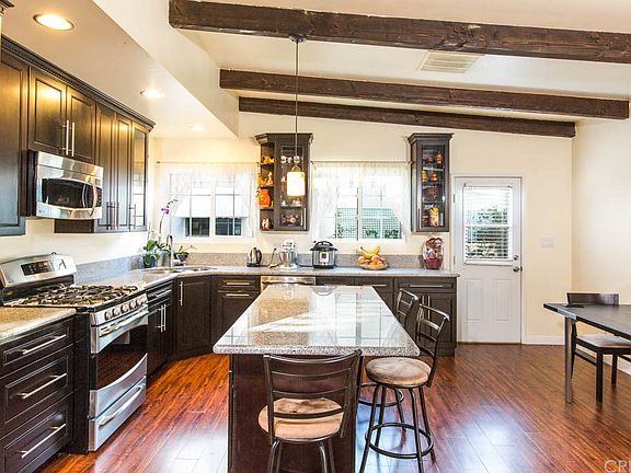This beautifully updated home is nestled on a quiet tree lined street in a great Granada Hills neighborhood and the owner has priced it to sell. Here are just a few of its many outstanding features: A flowing and freshly painted 1,530 square foot open concept floor plan with new flooring throughout. The living room is bathed in natural light from a multitude of windows and skylight highlighting the beamed ceiling, floor-to-ceiling brick fireplace, and the double. French doors to the new entertainer's patio. The family's cook is going to truly appreciate the completely remodeled kitchen's abundant custom cabinets, granite counters, center island with pendant lighting and built-in breakfast bar, durable dual basin stainless steel sink, built-in stainless steel appliances, handy side door to the backyard, plus the convenience of the seamlessly adjoining dining area. 4 spacious bedrooms with ample closets with new doors, and newer light fixtures. 2 beautifully appointed bathrooms; 1 has been fully redesigned. New interior doors. Central heat & high efficiency air with new ducts. Energy efficient dual pane windows will help keep your utility bills low and the interior quiet. New high efficiency water heater. Upgraded electric panel. Functionally located laundry. Large backyard and new covered patio. With its 2 car attached garage and oversized concrete driveway you'll have absolutely no problem securing parking for any vehicles and other toys off street. Easy freeway access.