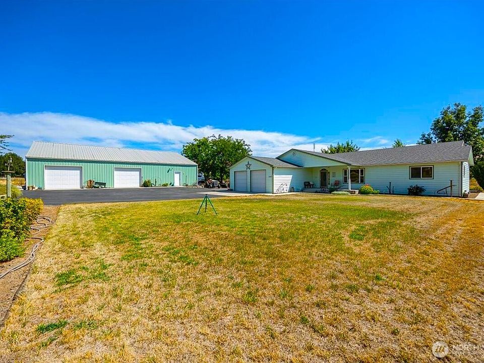 Located in Prosser, Washington, this 2.37-acre country property offers a 2,736-square-foot home built in 2007. The spacious house features a living room, family room, formal dining room, large office, and an eat-in kitchen with lots of storage. The oversized bedrooms and spacious master suite offer comfortable spaces to retreat. Solar panels help keep the electric bills low. The property also includes a versatile 3,000-square-foot shop, divided into three separate sections, perfect for a variety of uses. The land is ideal for a hobby farm, with potential for livestock or growing crops like grapes and lavender. The property is situated near the Yakima River and local hop fields, offering a peaceful, rural lifestyle.