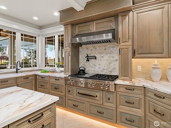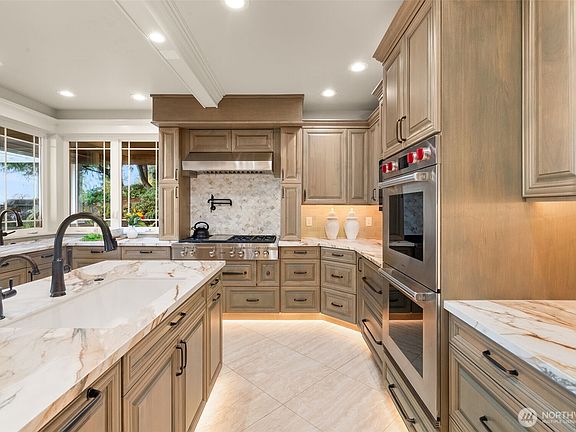 A gated sanctuary of privacy and luxury, this remodeled 5-bedroom home spans nearly 7 acres with 282’ of Puget Sound waterfront and panoramic views of Mt. Rainier and the Cascades. From tranquil sunrises to alpenglow sunsets igniting the peaks, each day brings a new masterpiece. The main-level ADU offers a kitchen, laundry, private entrance, and garage—ideal for multigenerational living. Media room, bonus room, and office provide flexibility for work or relaxation. The luxury kitchen blends high-end finishes with exceptional craftsmanship, perfect for both culinary creativity and entertaining. An elevator offers added luxury and ease. Expansive patios, manicured grounds, and a private pickleball court complete this rare waterfront retreat.