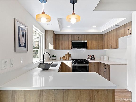 Discover your dream home in this beautiful, two-story condo nestled in a private, gated community that radiates pride of ownership. This 1630 sf. residence boasts a freshly painted interior and brand-new vinyl flooring throughout. Step into a fully remodeled kitchen featuring modern cabinetry, quartz countertops, backsplash, and brand-new stainless steel appliances. The spacious dining area provides ample room for entertaining guests, while the large family room complete with a cozy fireplace, is inviting and ideal for relaxation. The condo includes three generously sized bedrooms and two and a half bathrooms, offering plenty of space for family and guests. Enjoy the convenience of direct garage access along with a private laundry area. The community enhances your lifestyle with a refreshing pool and spa, abundant guest parking, and beautifully maintained common areas. Situated near excellent schools, shopping centers, parks, and entertainment options, this condo is truly a hidden gem. Don't miss out on this incredible opportunity, schedule your showing today!