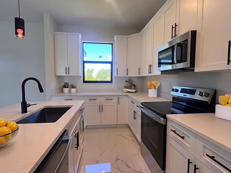 Brand New Construction. Amazing 3 bedrooms 2 bath Single Family Home. Impact windows and doors. Wood kitchen cabinetry with quartz counter tops, stainless steel appliances. Large living area includes a cozy living room, dining area, and kitchen. Car garage with automatic door-opener. Covered Lanai. Split bedroom plan.