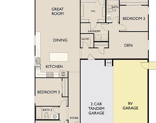 Step into the Opal Floorplan, a stunning single-story home offering 2,123 sq. ft. of expertly designed space that blends style, comfort, and functionality. With 4 bedrooms, a den, 3 bathrooms, and both a 2-car tandem garage and an RV garage, this home is perfectly suited for modern families seeking flexibility and room to grow.