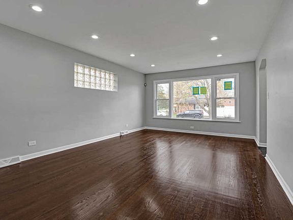 Prepare to fall in love with this completely remodeled brick Ranch! This freshly painted 3-bedroom 2.5 bath home has gorgeous hardwood floors; modern light fixtures, recessed lighting and lots of natural lighting from windows throughout! A large picture window is a focal point in the Living Room/Dining room combo.The dream kitchen has beautiful SS appliances, white shaker cabinets, granite counter tops w/matching subway tile backsplash. The eating area also has a large picture window that mirrors the living room window! There's 3 nice-sized bedrooms with hardwood floors. Each bath features modern fixtures & finishes w/beautiful tile that aids in total comfort. There's another bath w/ walk-in shower conveniently placed in the full finished basement. The basement has brand new carpet with a huge family room-perfect for entertaining! An office, and laundry room with a brand new Washer and Dryer. Exterior features a nice size yard, Patio area, great for barbecues, fenced yard and a 2-car detached garage with a long driveway-perfect for additional parking. Don't Miss Out-- Schedule your private tour today!