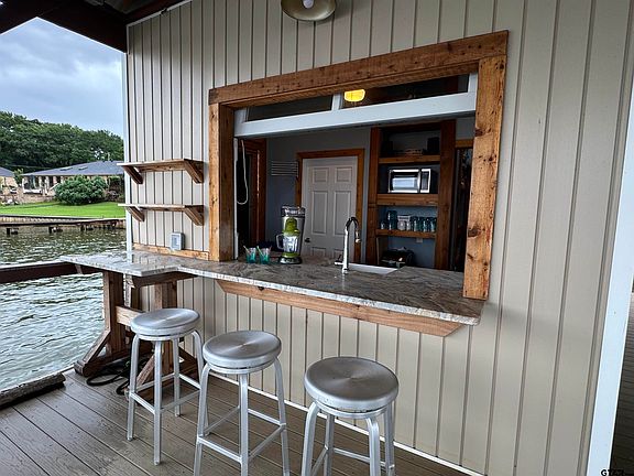 This location. This view. This boathouse. This house. Designed to make the most of every day at the lake, this wonderful waterfront home could be exactly what you've been wishing for. Located on Saline Bay, a popular summertime favorite of boaters and skiers, this home has big open lake views, an outdoor kitchen, a 7-person saltwater spa, lakeside sitting area with firepit and a beautiful new boathouse for starters. Four bedrooms with the primary bedroom on the lakeside, 3 bathrooms and a 2-car garage cover the basics. The totally remodeled kitchen also features a beverage cooler, convection oven and an awesome floor to ceiling appliance center. The lakeside family room has big windows with big views. Step outside to the spacious covered deck with an outdoor kitchen. Nearby is the pergola covered 7-person saltwater spa. Down the stone steps to the nicely landscaped lakeside sitting area with firepit before stepping onto the boathouse walkway. Constructed of water resistant, low maintenance material, the boathouse walkway and lower-level decking are the latest in boathouse builds. There's a double jet-ski platform lift and a boat lift designed to accommodate an oversized ski boat. Up the spiral staircase to the sundeck with a gate that opens to allow daredevils the thrill of jumping into the lake. The fun continues with a covered seating area back downstairs and a special corner sun deck for the little ones to enjoy the water. Best of all is the air-conditioned kitchen area with a serving window, half bath with camping toilet and a storage area roomy enough to accommodate a queen-size mattress. Other notables include: whole house emergency generator and a metal roof which matches the boathouse roof. See the extensive list of improvements in associated documents for more information.