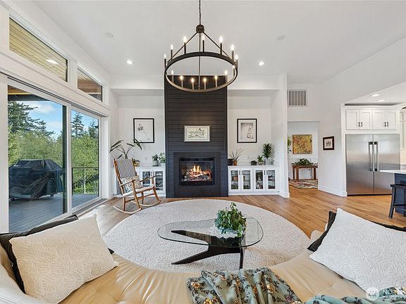 Luxury home on just over an acre in a gated community near Deception Pass State Park. Thoughtfully designed with territorial views, privacy, and upscale finishes throughout. The great room creates a grand first impression, flowing effortlessly into the gourmet kitchen with quartz countertops, walk-in pantry, high-end appliances, and oversized island with seating. Step out onto the expansive covered deck with an outdoor fireplace—ideal for relaxing or entertaining. The spa-inspired primary suite features a freestanding soaking tub and double-head walk-in shower. Lower level includes a spacious family room with kitchenette, two bedrooms, and full bath—perfect for guests. Experience comfort, elegance, and nature—all in one extraordinary home.