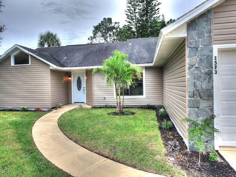 Beautifully renovated 1684 SF 4BR/2BA split flr plan home. New siding, septic system/drainfield, county water hookup, remodeled kitchen w/granite countertops, SS appl, inside laundry/utility room w/new Washer/Dryer, updated baths w/new tile & vanities, laminate flooring, hurricane shutters, fresh interior paint, new exterior doors, resurfaced driveway, new landscaping & much more. NO HOA