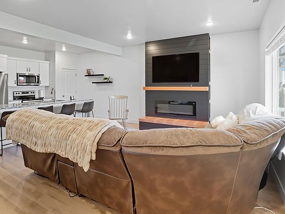 Welcome to Elk Mountain, in Hyrum UT! This stylish townhome offers walkable access to parks, a skate park, dog park, pool, and gym. Step inside to a modern kitchen with granite countertops and a spacious primary suite with walk-in closet. The family room features an electric fireplace with 65" TV included. Enjoy great views, friendly neighbors, and endless recreation nearby-don't miss it!