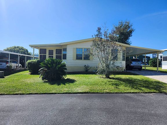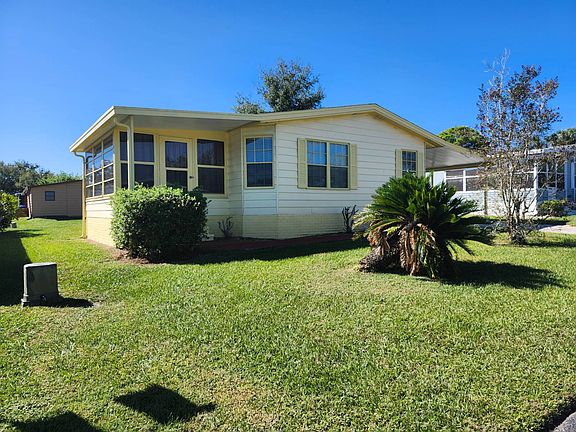 Start packing now! This 2/2 home is ready to bless you. Do you enjoy being in the kitchen? Then this is the kitchen for you. Open with tons of cabintry to fit all your gadets . Open concept to the dining area is great for entertaining and serving! Holidays or game night! For a quieter time relax in the very spacious living room beaming with natural light from the front windows. The sunroom is just as impressive in size and offers an entry/exit door to the front yard. The owners bath has a step-in shower with a grab bar. The guest room is across from the full guest bath. This room is also large with a walk-in closet. In addition to outside storage your laundry is inside! Welcome to your new home. See you soon! Located in the very desirable 55+ Foxwood Village, a Spectrum Community with 250+ Channels and 4 mbps high speed internet. Foxwood Village is an active 55 community that is pet friendly and offers great amenities like: Clubhouse with too many Social Activities to mention, Dog Park, Exercise Room, Pickle Ball Court, Corn Hole, Putting Green, Firepit, Heated Pool, Tiki Huts, Rec Room, Hot Tub, Showers, Dry Sauna, Billiards/Game room, Security Cameras, Social Clubs! Conveniently located near shopping, restaurants, medical facilities and just a short drive to popular Florida attractions! Home sold 'As Is' without warranties or guarantees by seller and/or Broker. All listing information is deemed reliable but not guaranteed and should be independently verified through personal inspection and/or by appropriate professionals. The buyer assumes full responsibility for obtaining all current rates of lot rent, fees, or pass-on costs associated with the community, park, or home from the community/park manager.