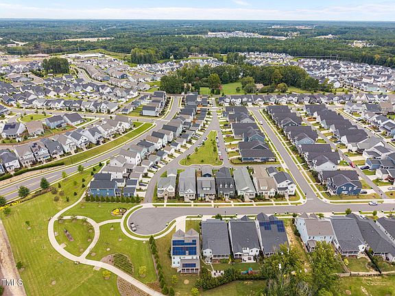 This spacious 4-bedroom, 4.5-bath end-unit that backs up to 15 acres of green area and playgrounds offers the perfect blend of style, comfort, and efficiency. Large, mature trees protect your privacy so you can enjoy the best of both worlds. A bonus room with attached bathroom, office, and playroom provide flexible living options for work, entertaining, or relaxation. The heart of the home features an open-concept layout with a gourmet kitchen, navy island, quartz counters, stainless appliances, and seamless flow into the living and dining areas. Retreat to the luxury owner's suite with spa-like bath including dual vanities, soaking tub, and walk-in shower. Enjoy the outdoors year-round from the expansive screened porch overlooking private green space and playground. $40,000 in solar panels deliver energy efficiency and long-term savings with $16/month electricity bills for most of the year. With recent comparable sales and upgrades considered, the true value is closer to $750,000. Agents, please see the comparisons used in the documents section along with pre-listing home inspection report. $15,000 paint and carpet allowance with an acceptable offer. This is a fantastic opportunity in this sought-after community!