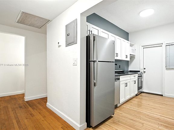 Bright corner 2 bed, 2 bath in Don Bar, a quiet and peaceful building just one block from Lincoln Rd and a short walk to Espanola Way. Features include a brand-new primary bathroom with shower, partially updated second bath with tub, new appliances, and freshly painted. Original hardwood floors, Venetian blinds, and private back entrance add charm. Washer and dryer are just steps from the unit. Easy residential street parking. Only 5 minutes to the beach and 3 blocks to Flamingo Park. Prime South Beach location.