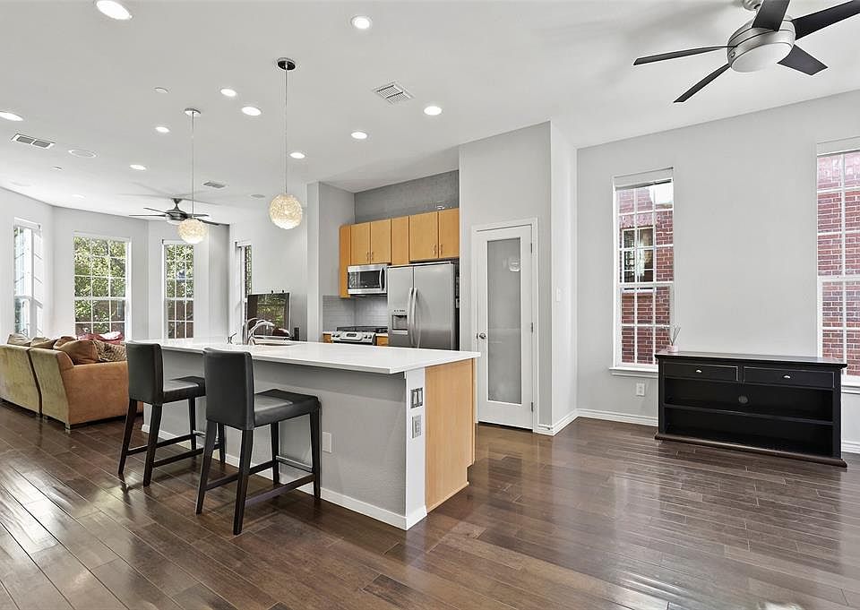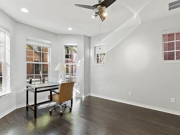 Encompassing 2,009 square feet of comfortable living space, this townhome features two bedrooms and two and a half baths that were thoughtfully planned out over three floors. Located in the heart of Addison Circle, the first floor features an en-suite bedroom that can be doubled as a study. The second floor is for living and entertaining with the open layout, an upgraded kitchen that features quartz countertops, stainless steel appliances, motorized shades that control the amount of natural light, and a guest bathroom. The owner's retreat, located on the third floor, features a spa-like bathroom with oversized shower, hardwood floors, a generous closet, and a sitting area.