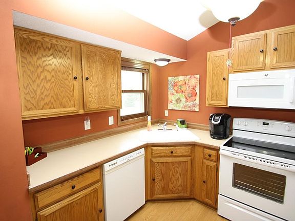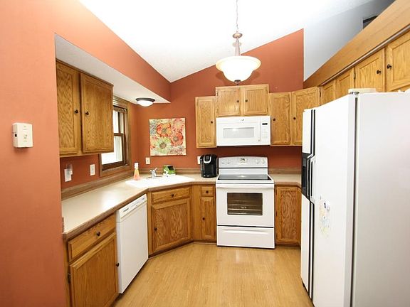 Do you like vaulted ceilings? This is your home, the three bedroom upstairs, living room, kitchen, and dining room all are vaulted. Move in ready with newer roof siding, furnace, air conditioning, maintenance-free deck, fenced yard, heated garage, and a gas fireplace.