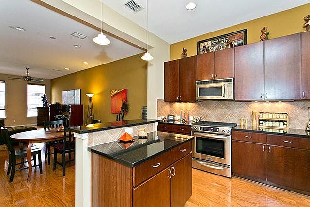 Chic townhome in sought after Addison Circle! Walk to entertainment & restaurants. Hardwood & tile throughout & current paint trends. Open island kitchen with gas range, SS appliances, & granite. Large living area can accommodate large furniture. Excellent condition. Private balcony overlooking courtyard. Access to Addison amenities that includes a fabulous gym. Current tenants are relocating but loved living there.SEE SUPPLEMENTS FOR APP INFO.