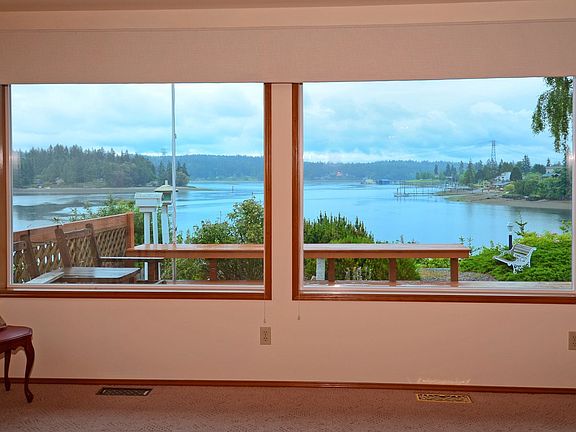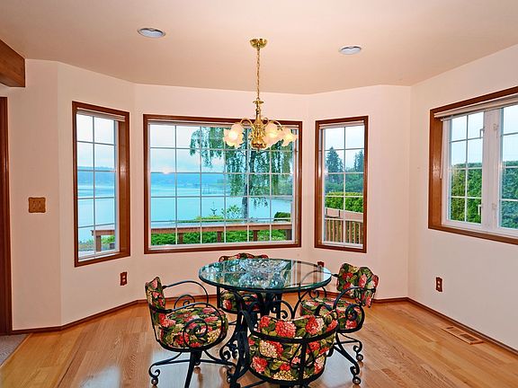 Desirable Virginia Point waterfront home has stairs to beach & float--anchor your boat in deep water moorage out front. Well maintained custom home has a great floorplan, huge deck, main floor bedroom, a private balcony off mstr BR suite. Hardwood flrs grace the entry, leading to grand livingrm w/ breathtaking water views. Cozy woodstove & efficient heat/cooling forced air/heat pump to keep those energy bills down. Enjoy the spectacular sunrises from the dining room to start your day. New Price!