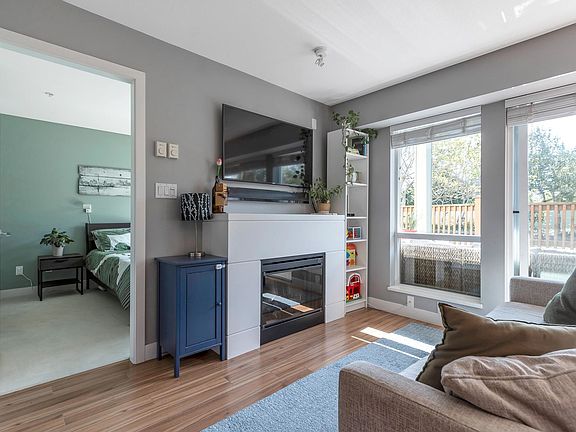 Rare Corner Condo with Huge Patio in Morgan Crossing! Spacious 1 bed + large den home with an oversized fenced patio for true outdoor living—perfect for barbecues, relaxing, or entertaining. Bright, open layout with large windows, quartz counters, stainless steel appliances and laminate flooring. Versatile den makes a great home office, guest room or ??. Ideally located directly above the shops (quiet below) and beside a serene courtyard, offering rare peace and privacy. Enjoy new EV chargers in the parkade, plus 1 parking & 1 storage locker. Pet-friendly (2 dogs, 2 cats, or 1 of each—no size restrictions!). Steps to 70+ shops, Thrifty Foods, restaurants, gyms & services. Don't miss out on the convenience and lifestyle of this wonderful community! **Open House - Sat Sept 27th 12-2PM**