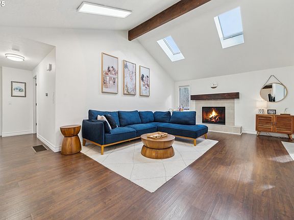 - Features: Beamed Ceilings, Fireplace, Skylight, Vinyl Floor