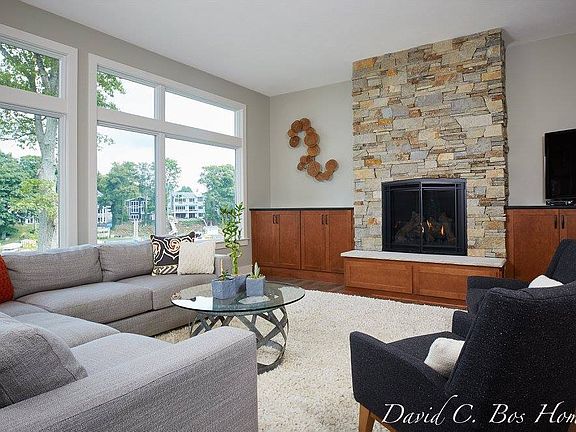 Escape to your own private lakefront oasis! This meticulously crafted custom home, nestled on a quiet cul-de-sac overlooking Spring Lake, seamlessly blends comfort, style, and functionality. Boasting over 3,450 square feet of living space, this spacious 4-bedroom, 3.5-bathroom ranch offers the perfect retreat for relaxed living and memorable entertaining. And for those who work from home, a dedicated main floor office provides the ideal workspace. Built in 2016, the home's professionally decorated interior features an inviting open-concept design, showcasing clean lines, warm tones, and high-end finishes. Natural light floods the main floor through large windows, framing breathtaking lake views and highlighting the gleaming hardwood floors and custom cabinetry. The gourmet kitchen is a chef's dream, complete with leathered granite countertops, ample custom cabinetry, and a dedicated beverage bar with a mini-fridge perfect for impromptu gatherings and weeknight celebrations. A convenient powder room is tucked away just off the kitchen for guest use. A main-floor guest suite with a private en suite bathroom provides comfortable accommodations for visitors. The luxurious primary suite is a true sanctuary, featuring an oversized bedroom and a spa-like bathroom. A custom walk-in closet ensures effortless organization, leaving you more time to enjoy your morning coffee on the deck while watching the swans glide by. The main floor also includes a laundry room with a side-by-side washer and dryer and ample storage, conveniently tucked away behind a sound-dampening pocket door. The fully finished walkout basement (completed in 2022) is an entertainer's paradise. This expansive space boasts a full kitchenette with a generous island, sink, full-sized refrigerator, dishwasher, and even a double-tap kegerator. French doors open to a patio, seamlessly extending the party outdoors. The lower level also includes a laundry hook-up, a large den perfect for movie nights, and additional bedrooms for guests or family. Step outside to discover the expansive lakefront lot and brand-new dock, offering endless possibilities for recreation from sunrise paddleboarding to afternoon boat rides. The professionally landscaped yard features low-maintenance plantings, maximizing the natural beauty of the surroundings. A circular driveway provides convenient access for multiple vehicles. Situated on a quiet cul-de-sac with only 17 homes, this exceptional property offers a sense of seclusion and tranquility, bordered by peaceful woodlands at the front and stunning lake views at the rear. While enjoying the peacefulness of your private haven, you're still conveniently close to Grand Haven City Beach, the Grand Haven Farmers Market, Spring Lake Farm & Garden Market, Spring Lake Central Park, and the Grand River Boardwalk. This exceptional home offers a balanced lifestyle that is both sophisticated and comfortable a sanctuary for quiet moments and a stage for memorable gatherings. It's the perfect place to create lasting memories with loved ones. Welcome home! Renter is responsible for gas, electricity, water, and yard maintenance. Owner is responsible for snow removal.