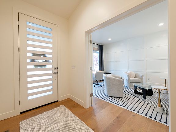 Cottonwood Club neighborhood! Super walkable, incredibly convenient access and top rate schools! This nearly new modern rambler has spicy curb appeal, a triple garage, and a large private yard with stunning mountain views! The floor plan has fluidity with a central gallery connecting the spaces. There is a formal living room/den plus a huge vaulted "great room" with covered patio/deck access. The kitchen has deluxe features including a big island bar. The spacious primary suite and the lovely guest suite are tucked away in opposing wings. Fabulous modern fireplace, wood plank floors, quartz counters and beautiful blinds and finishes abound. Don't miss the exercise room, huge rec room, cold storage and dual primary suite closets. Total four bedrooms, four baths. A quality home in perfect condition.