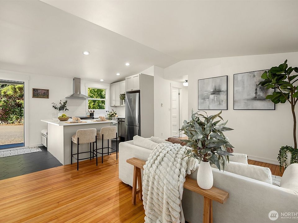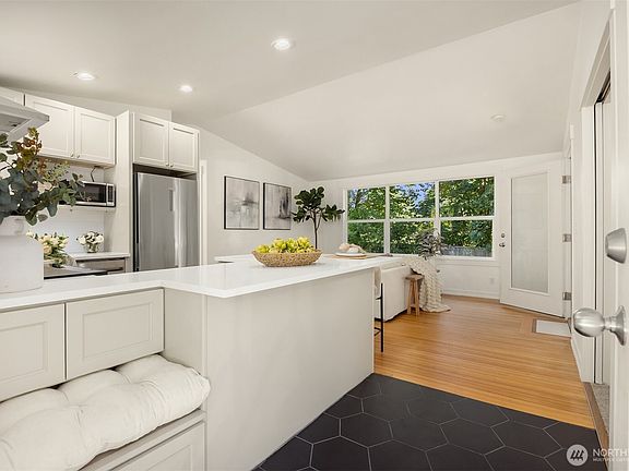 Remodeled and radiating charm, this single-story end-unit condo offers the best of Bainbridge living. Originally built in 1942 as an officer’s barracks, the home now features a fully renovated kitchen with sleek finishes and all new appliances—including dishwasher. The versatile bonus room has been updated and makes an ideal office, dining space, or flex area to suit your lifestyle. Two bedrooms, vaulted ceilings, and preserved fir floors add character and warmth, while the fenced yard is perfect for pets or play. Enjoy private outdoor spaces and the flexibility of both front and back entries. Just minutes to trails, beaches, and all the charm of Lynwood Center.