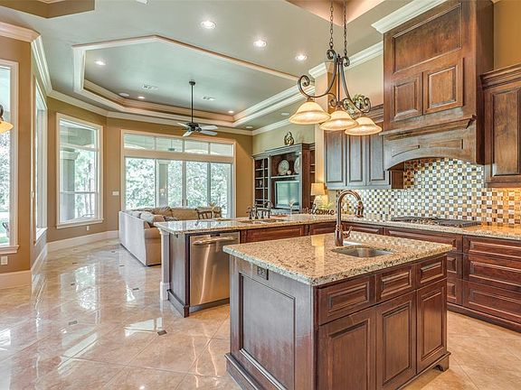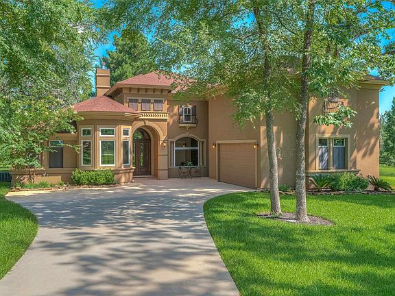 Stunning Mediterranean style sprawling 3 bedroom 1-story sitting on a 1.44 Acre lot with a small pond to the left of the property. Above the garage w/separate access is a humongous game room w/a full wet bar & 1/2 bath that could make into a wonderful guest suite, home office or possible quarters. Double doored Master wing has patio/backyard access, two custom closets, walk-in shower + garden tub. Amazing butt glass windows, tons of built-ins, lighted double & triple layered ceilings & art niches! Stunning tile floors throughout entire house. Two secondary bedrooms have private bathrooms. Gourmet kitchen features custom cabinets, backsplashes + 2 sinks all open to the den & breakfast area w/access to the covered patios, built-in grill & sink along w/fabulous views of the private back yard. Emerald Lakes is a gated 460 acre community w/30 acres of spring fed lakes for fishing/boating. Easily accessed right off I-45. Minutes to shopping/entertainment. Not Affected by Harvey Per owner.