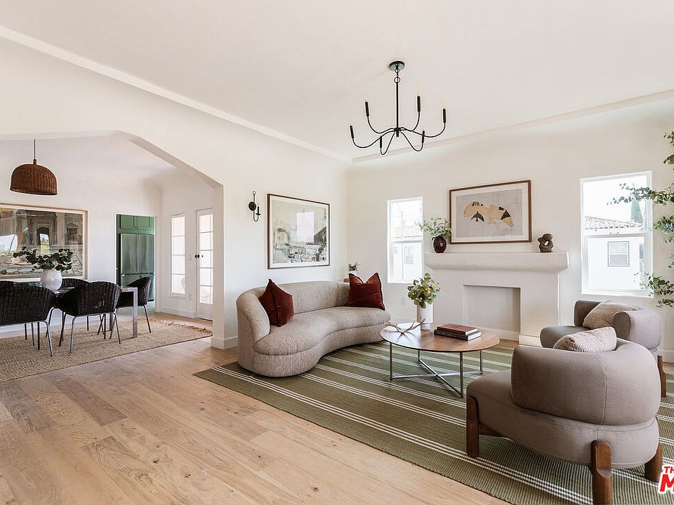 Perched on the upper level of a beautifully restored Spanish Colonial Revival, this elegant 2-bedroom, 2-bath residence offers the perfect blend of historic charm and thoughtful updates, right in the heart of Pico-Robertson. From the moment you enter, you're greeted by rich architectural details: arched doorways, French windows, coved ceilings, and hardwood floors throughout. The living room is warm and inviting, anchored by a set of French doors that open to a charming front balcony, perfect for morning coffee or golden hour light. The formal dining room also opens to its own balcony, offering a wonderful indoor-outdoor feel and a cross-breeze that fills the home with natural light. The kitchen has been tastefully updated, maintaining the home's classic aesthetic while offering generous cabinetry and room to cook and gather. Both bathrooms have been thoughtfully renovated with timeless finishes that complement the era of the building. Modern upgrades include three mini-split HVAC units, a new roof, and permitted improvements to the electrical, plumbing, and foundation ensuring comfort and peace of mind. Set on a quiet, tree-lined street surrounded by historic architecture, this location is second to none. You're just minutes from Beverly Hills, The Grove, Cedars-Sinai, La Cienega Park, and some of LA's best restaurants and shops. Easy access to major thoroughfares makes getting around the city a breeze. This is a rare opportunity to own a piece of Los Angeles history - a character-filled upper unit with light, privacy, and timeless style.