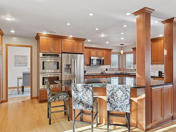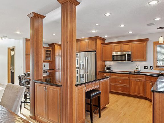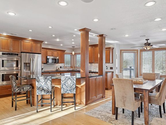 Perfectly situated with easy access to scenic neighborhood and Maple Grove trails, including a pedestrian-friendly underpass connecting to the extensive Three Rivers Park District trail system. The fully fenced backyard oasis hosts a pool, gazebo, deck and patio perfect for outdoor cooking, entertaining, and relaxation. Inside the inviting floor plan welcomes you with a grand foyer that floods the space with natural light. Solid hardwood floors flow seamlessly throughout the main level. Kitchen boasts amazing grand center island, double ovens, granite countertops, quality cherrywood cabinetry including a built-in hutch. Living room offers cozy gas fireplace and built ins, while the formal dining features an elegant bayed window with storage bench. Upstairs, you’ll find 4 bedrooms on one level with the primary suite featuring a walk-in closet and luxurious bathroom renovation. The finished lower level with walk-out includes wet bar, exercise room and recreation space. Oversized 3 car garage with loads of storage. This home is filled with function, character and charm.